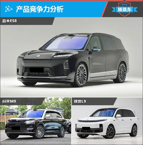 蔚来ES8在细分市场中锁定了两大核心对手:其最直接的竞争者,是同样主打纯电豪华的问界M9纯电版,二者在技术路径与市场定位上重合;另一大劲敌则是理想L9,尽管动力上采用增程式方案,但相接近的车身尺寸与定价,使其成为蔚来ES8在争夺同一批家庭用户时无法忽视的对手。